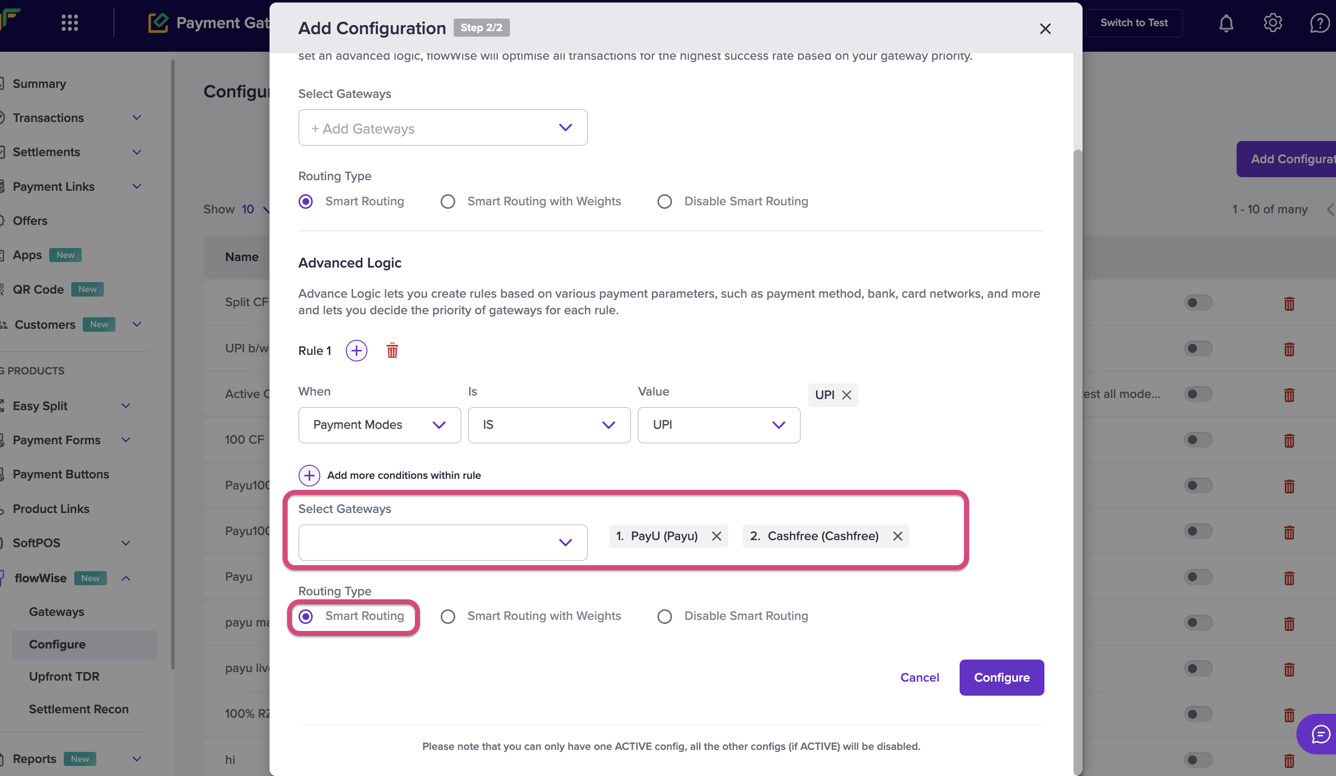 Ideal for scenarios with a preferred primary gateway, this routing applies a minimum success rate threshold. If success drops below the threshold, Flowwise switches to Smart Routing for optimal fallback.