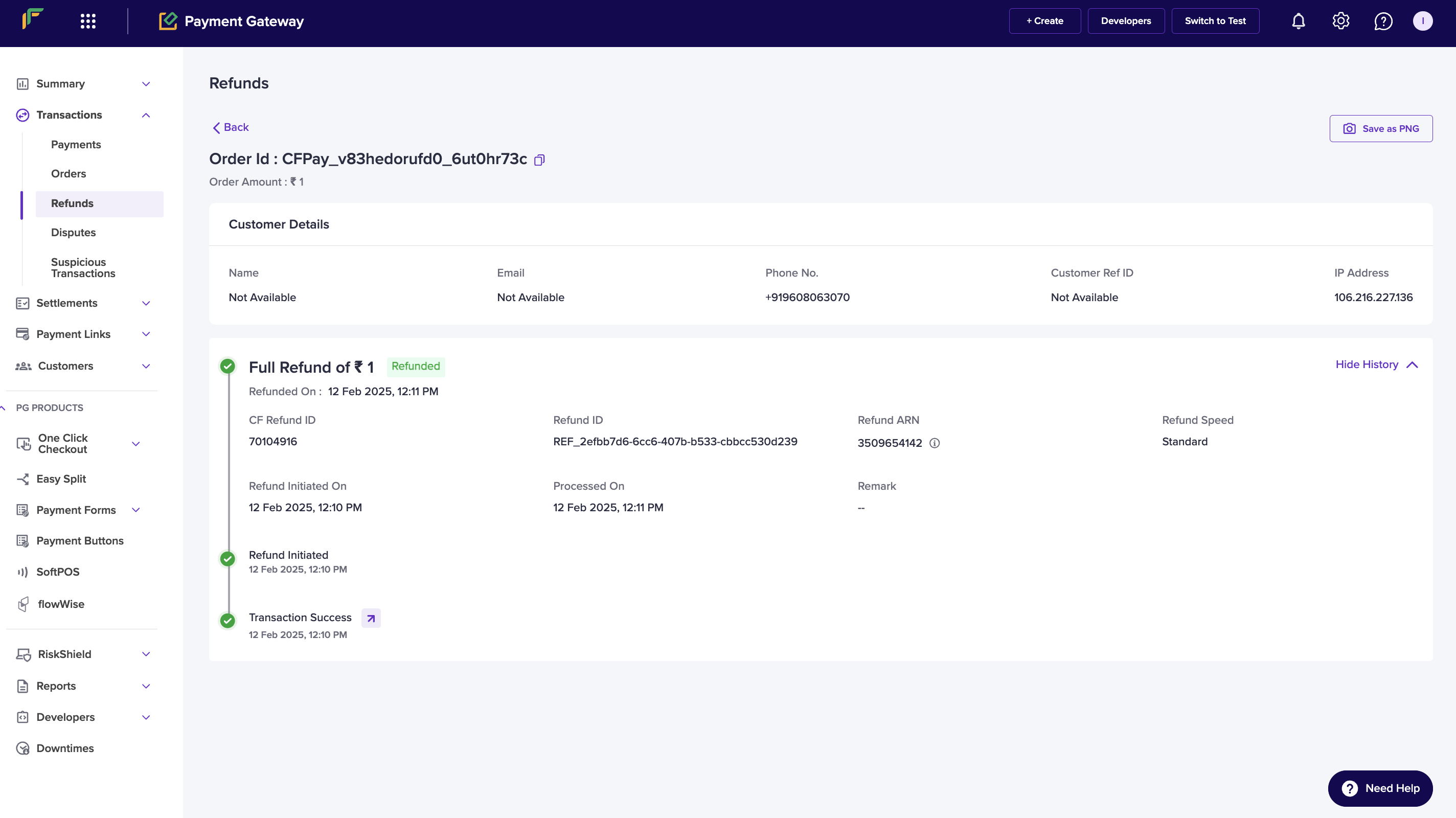 - Auto Refunds: Access details of auto refunds processed by Cashfree