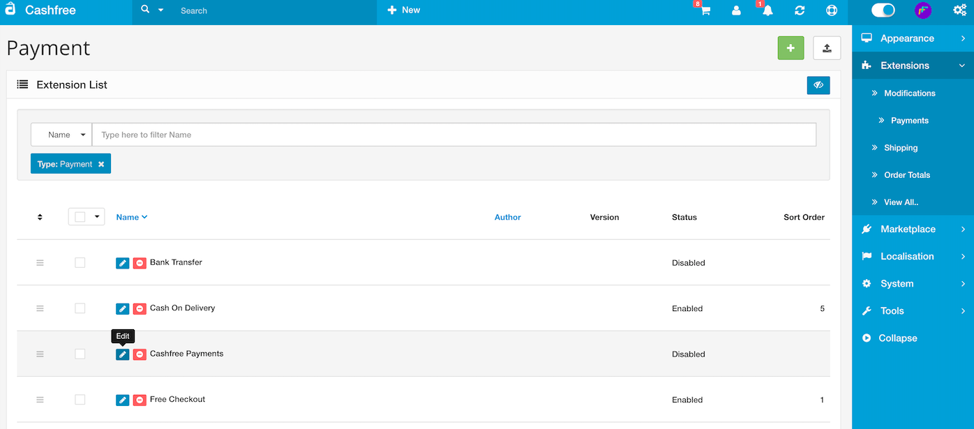 Add Cashfree Payments Extension