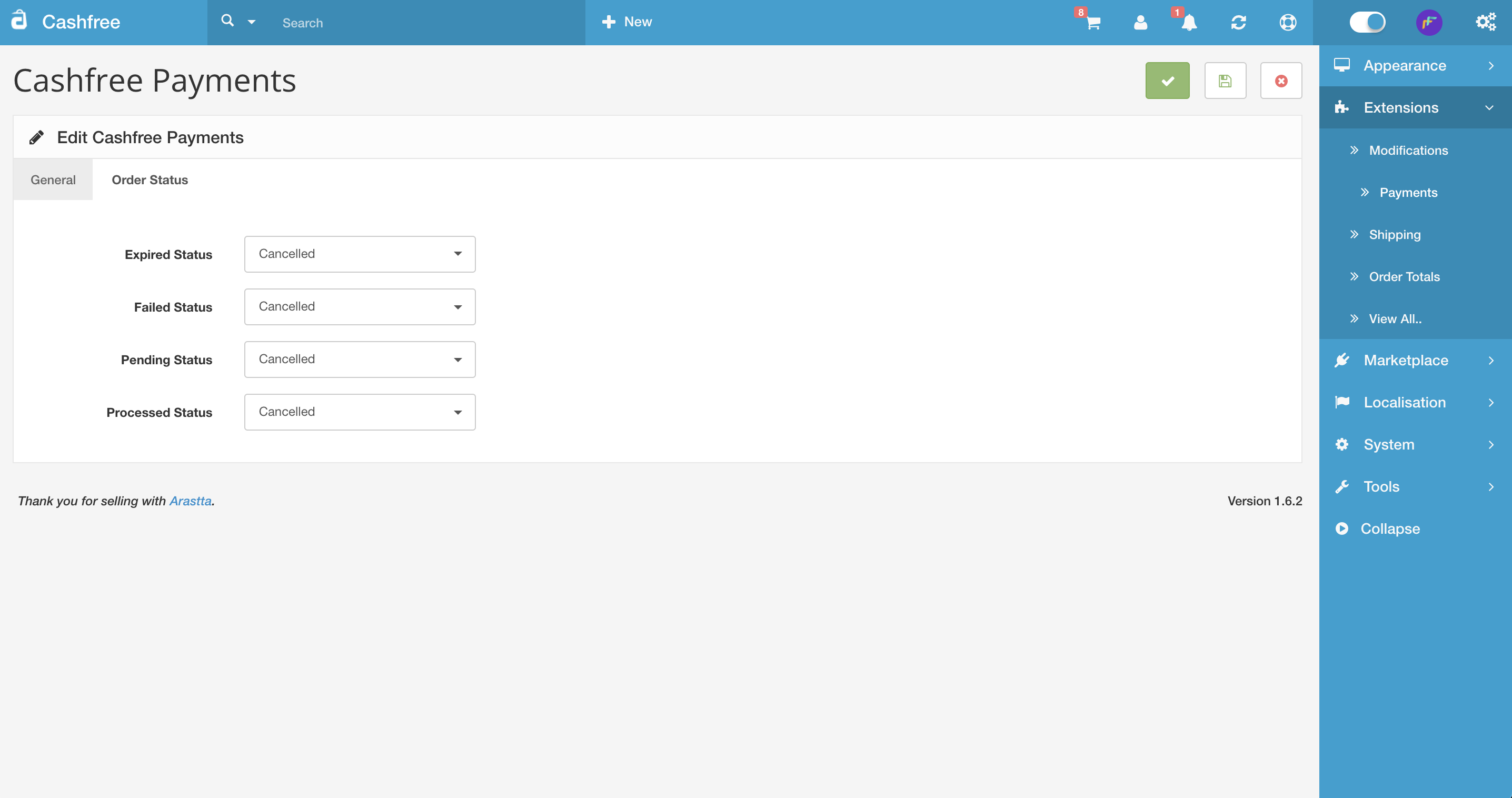 Cashfree supports 3 versions for OpenCart integration,- OpenCart version 3.0