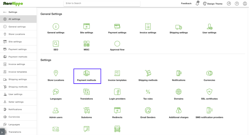 To add Cashfree Payment Gateway to your StoreHippo account,- Log in to your StoreHippo account and click Settings in the left navigation section.