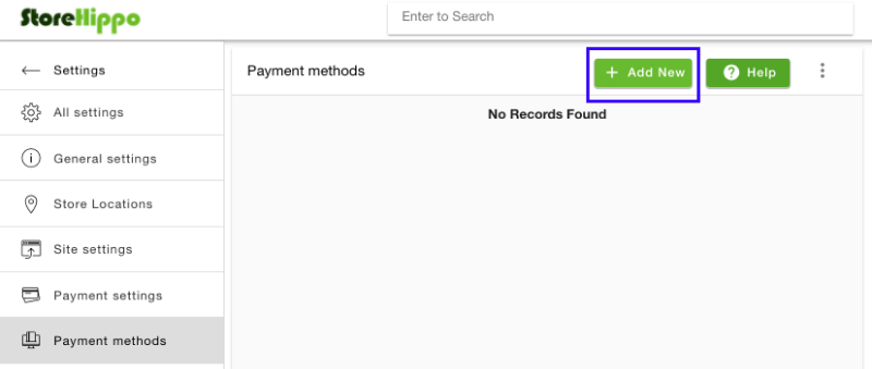 In the Payment methods screen, click Add New to add a new payment gateway.