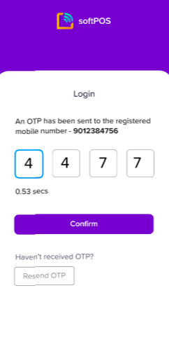 - Launch the application, and enter the phone number that is registered with Cashfree to access softPOS application and click Send OTP.